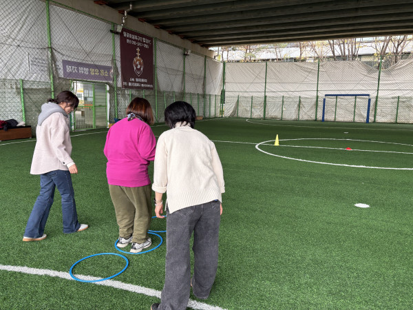 -달리기, 모자 씌우기, 지그재그 달리기 등 몸풀기